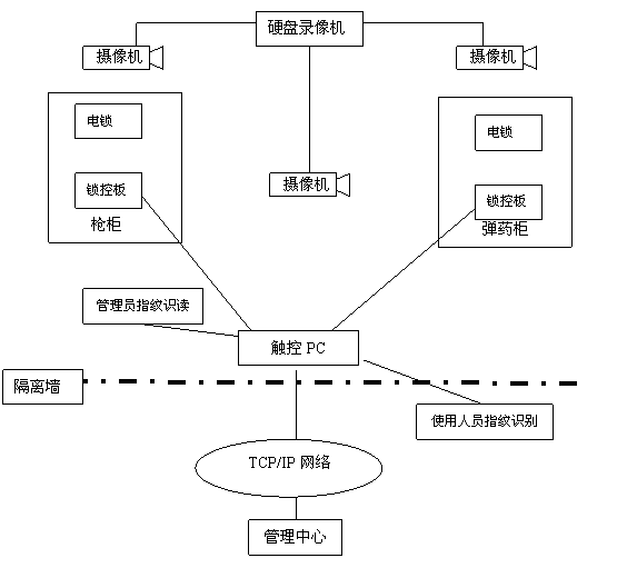 此槍彈柜系統(tǒng)不僅可作為一個(gè)單一的系統(tǒng)存在,并且還可以向其他系統(tǒng)傳送信息,通過網(wǎng)絡(luò)可以實(shí)現(xiàn)數(shù)據(jù)共享和數(shù)據(jù)傳輸,首長或管理人員可以在任意網(wǎng)絡(luò)接點(diǎn)上檢查槍支或彈藥當(dāng)時(shí)的在位情況,并可以閱覽保管人員的工作狀況,還可以查詢以往的歷史數(shù)據(jù)并用多種方式輸出。